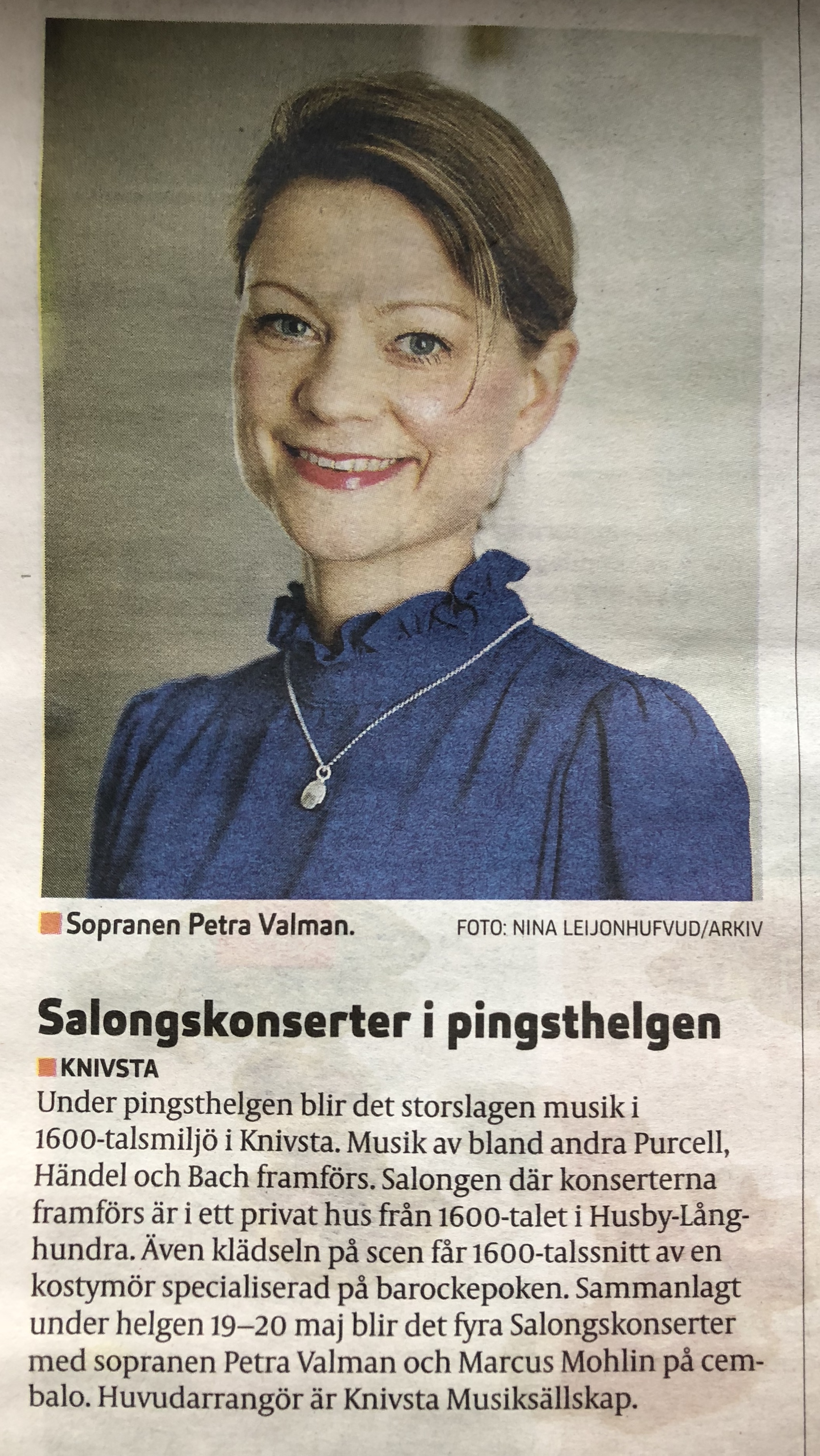 2013 Frauen liebe und leben – sångcykel Lunchkonsert Rotary, Knivsta ”8 november. Knivstabon och operasångerskan Petra Valman gav klubben en strålande musikstund, när hon och pianisten Jacob Piamorex framförde känslofyllda stycken av Robert Schumann. De gick direkt till hjärtat! Petra Valman utsågs 2012 till Knivsta kommuns kulturstipendiat.”